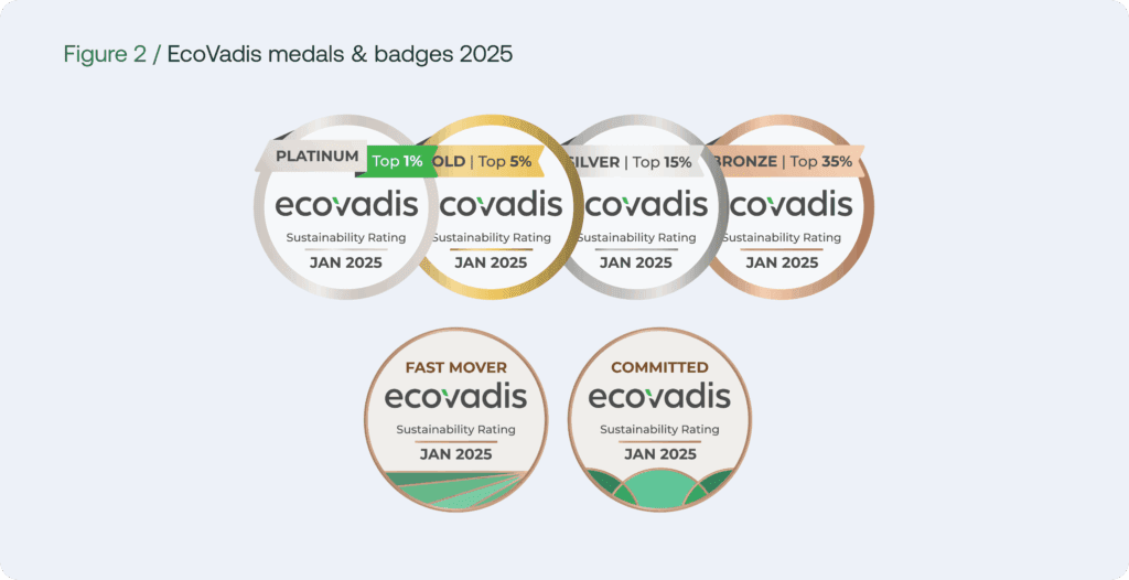 (2) EcoVadis Blog. (2025). EcoVadis Medals and Badges. Available at: https://ecovadis.com/blog/ecovadis-medals-and-badges-2/