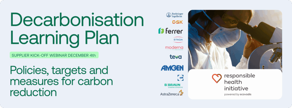 The Responsible Health Initiative (RHI) — powered by EcoVadis and the industry leaders including Amgen, AstraZeneca, GSK, Moderna, Stada, Teva, UCB, Ferrer, and Boehringer Ingelheim — is proud to launch the Decarbonisation Learning Plan to accelerate climate action across the pharmaceutical and biotech supply chain.